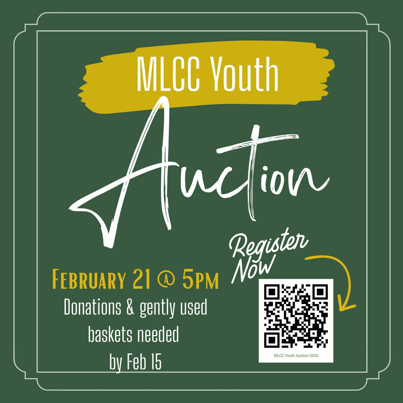 Youth Ministry AuctionFebruary 21, 2026 5:00pmRegistration Link: https://linktr.ee/mlccyouthauction2026 Add to Calendar